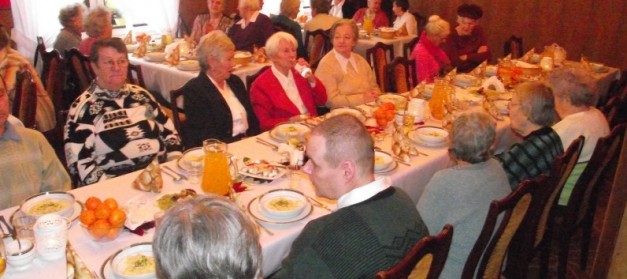 Zupa grzybowa, ryba na gorąco, pierogi z kapustą i łazanki, różne sałatki, owoce i ciasta wszystkim smakowały bo przygotowano je z sercem dla tych, których na co dzień nie zawsze stać na niektóre potrawy. Zadowoleni goście, zjedzone potrawy i wysłuchane kolędy dopełniały miłej atmosfery.